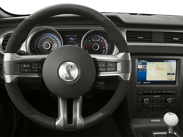 It offers Automatic Climate Control for personalized comfort. Our dealership has already run the CARFAX report and it is clean. A clean CARFAX is a great asset for resale value in the future. Bluetooth® technology is built into this 2013 Ford Mustang Shelby GT500 , keeping your hands on the steering wheel and your focus on the road. The installed navigation system will keep you on the right path. Good News! This certified CARFAX 1-owner vehicle has only had one owner before you. The leather seats in the vehicle are a must for buyers looking for comfort, durability, and style. Maintaining a stable interior temperature in this model is easy with the climate control system. The Ford Mustang Shelby GT500 is rear wheel drive. This vehicle projects refinement with a racy metallic gray exterior. The Ford Mustang Shelby GT500 has a V8, 5.8L high output engine. Easily set your speed in it with a state of the art cruise control system. Increase or decrease velocity with the touch of a button.