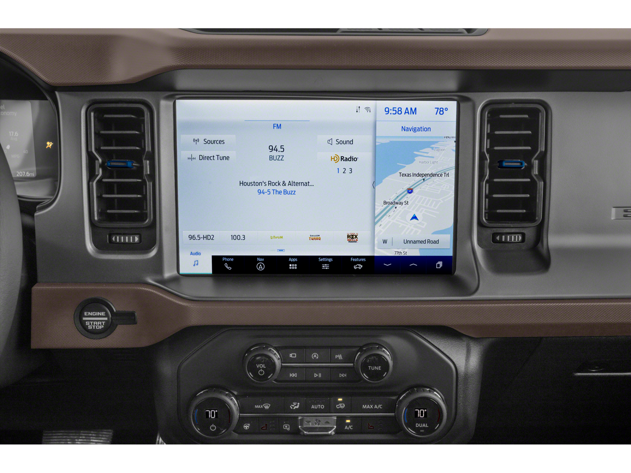 Protect this 2023 Ford Bronco from unwanted accidents with a cutting edge backup camera system. The leather seats in this Ford Bronco are a must for buyers looking for comfort, durability, and style. Bluetooth® technology is built into this model, keeping your hands on the steering wheel and your focus on the road. This model keeps you comfortable with Auto Climate. This vehicle is a certified CARFAX 1-owner. Our dealership has already run the CARFAX report and it is clean. A clean CARFAX is a great asset for resale value in the future. This model warns of approaching vehicles with Cross-Traffic Alert. with XM/Sirus Satellite Radio you are no longer restricted by poor quality local radio stations while driving this vehicle. Anywhere on the planet, you will have hundreds of digital stations to choose from. This 1/2 ton suv offers Android Auto for seamless smartphone integration. You'll never again be lost in a crowded city or a country region with the navigation system on the vehicle.
