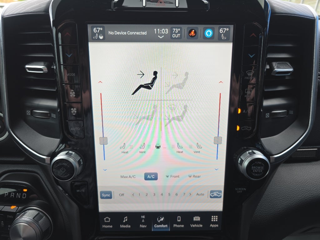 Laramie Level 1 Equipment Group: Google Android Auto; SiriusXM Radio Service; USB Host Flip; Rear Window Defroster; Blind Spot and Cross Path Detection; Rain Sensitive Windshield Wipers; Integrated Center Stack Radio; ParkSense Front/rear Park Assist with Stop; For Details. Visit DriveUconnect.com; For More Info. Call 800-643-2112; Rear Power Sliding Window; Integrated Voice Command with Bluetooth®; Connectivity - US/Canada; 12" Touchscreen Display; GPS Navigation; 4G LTE Wi-Fi Hot Spot; GPS Antenna Input; SiriusXM with 360L; Global Telematics Box Module; Connected Travel and Traffic Services; Front LED Fog Lamps; LED Reflector Headlamps; Foam Bottle Insert (door Trim Panel); Apple CarPlay; Disassociated Touchscreen Display; HD Radio; Remote Tailgate Release; Auto High Beam Headlamp Control; Electric Shift on Demand Transfer Case; Front Door Accent Lighting; 2nd Row in Floor Storag