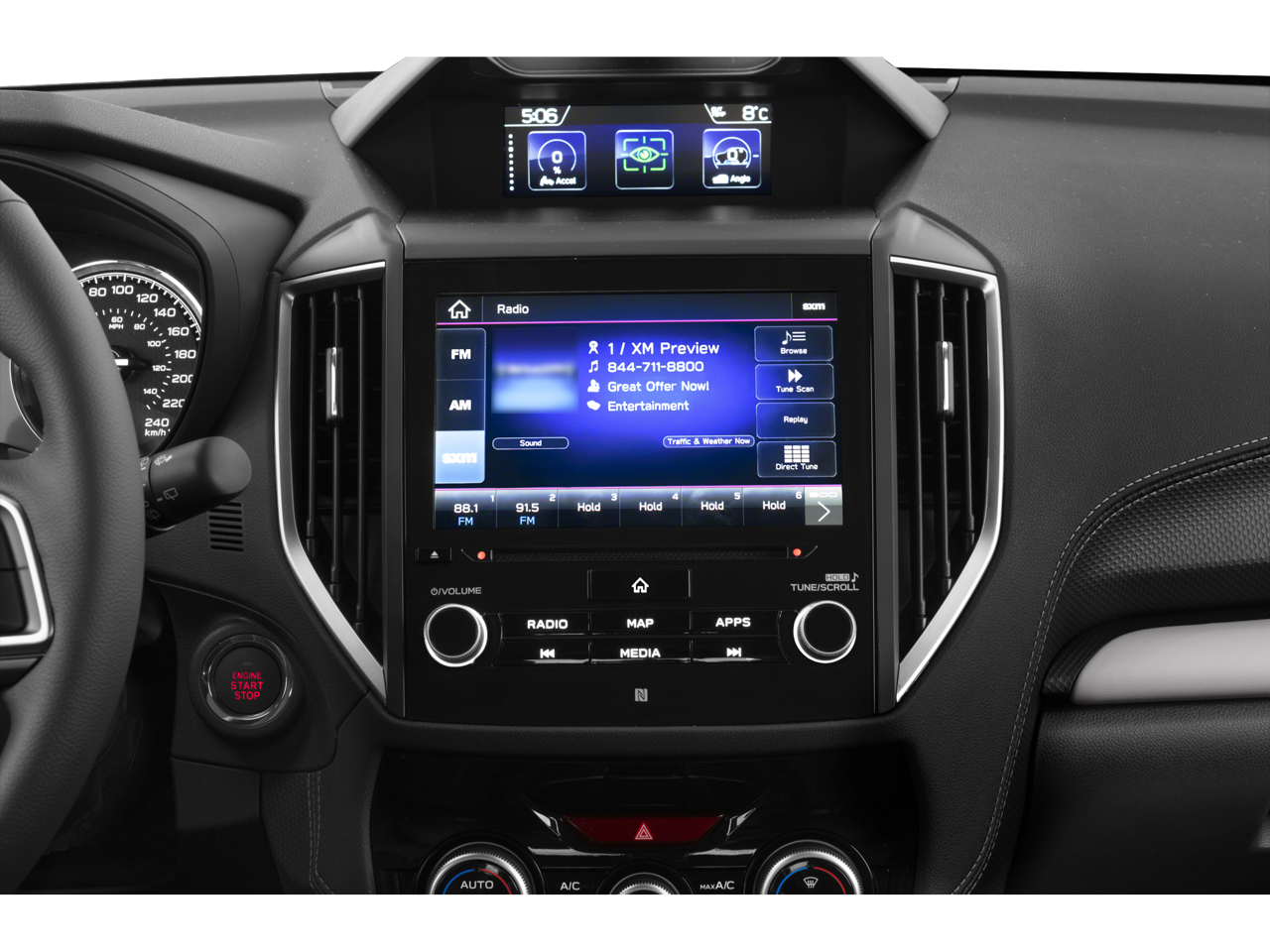 - Radio: Subaru Starlink 8.0" Multimedia Plus System -inc: AM/FM stereo HD Radio w/single-disc CD player, MP3/WMA/CRR/RW file capability, multi-touch gesture high resolution display screen, voice activated controls, Bluetooth® audio streaming, hands-free phone connectivity and hands-free SMS text messaging connectivity (refer to subaru.com for cell phone compatibility), Near Field Communication (NFC), iPod control capability, SiriusXM All Access radio and Travel Link (4 months free trial/subscription required after), smartphone integration for AHA, Android Auto, Apple CarPlay, Pandora and Starlink cloud applications (refer to subaru.com for app availability), USB and Over The Air (OTA) audio system update, steering wheel controls for audio and Bluetooth®, 6 speakers, 3.5mm auxiliary input jack and dual USB A input/charge ports