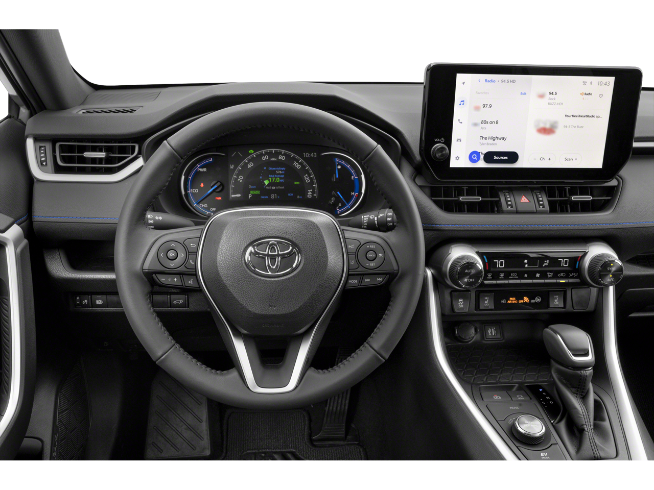 Protect this small suv from unwanted accidents with a cutting edge backup camera system. The state of the art park assist system will guide you easily into any spot. This model's blind spot monitor enhances safety. Our dealership has already run the CARFAX report and it is clean. A clean CARFAX is a great asset for resale value in the future. It keeps you comfortable with Auto Climate. The leather seats in this model are a must for buyers looking for comfort, durability, and style. Keep your hands warm all winter with a heated steering wheel in this Toyota RAV4 Hybrid . It offers Android Auto for seamless smartphone integration. This unit offers Apple CarPlay for seamless connectivity. This unit features a hands-free Bluetooth® phone system. This vehicle is equipped with all wheel drive. Make room for more passengers, carry extra luggage or your favorite sports gear with the roof rack on the vehicle.
