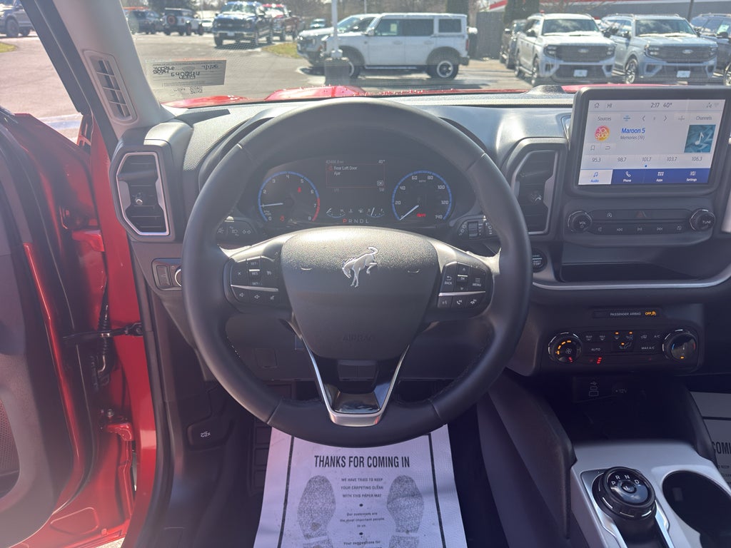 It offers Android Auto for seamless smartphone integration. Our dealership has already run the CARFAX report and it is clean. A clean CARFAX is a great asset for resale value in the future. See what's behind you with the back up camera on it. It's Cross-Traffic Alert: Safeguarding you from unexpected traffic when reversing. This unit offers Apple CarPlay for seamless connectivity. Bluetooth® technology is built into this 2024 Ford Bronco Sport , keeping your hands on the steering wheel and your focus on the road. The rear parking assist technology on the Ford Bronco Sport will put you at ease when reversing. The system alerts you as you get closer to an obstruction. The vehicle offers Automatic Climate Control for personalized comfort. Maintaining a stable interior temperature in the Ford Bronco Sport is easy with the climate control system. This model has a 3 Cyl, 1.5L high output engine.