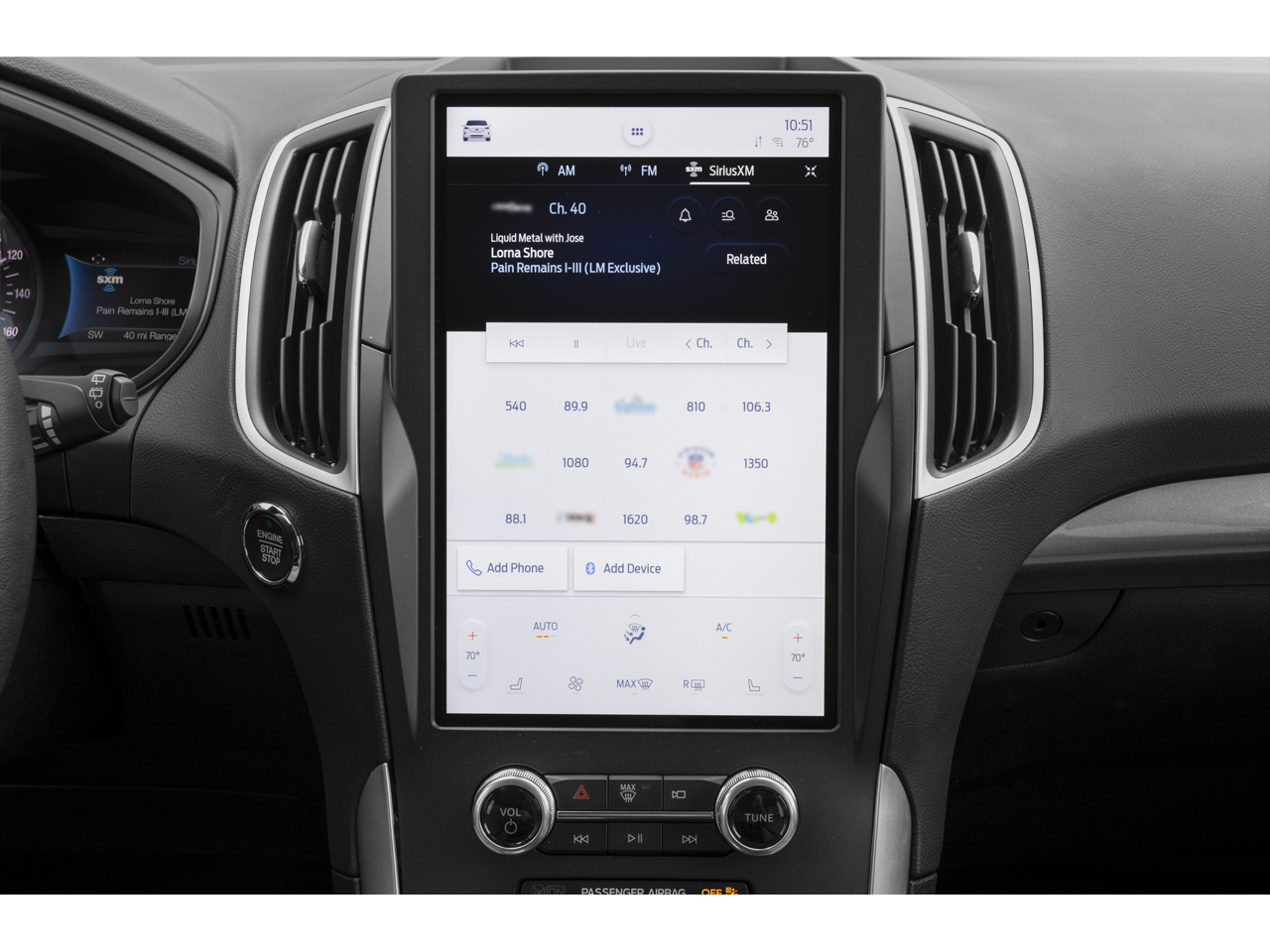 This Ford Edge's Cross-Traffic Alert: Safeguarding you from unexpected traffic when reversing. This model has a clean CARFAX vehicle history report. Apple CarPlay: Seamless smartphone integration for this model - stay connected and entertained on the go! This unit features a hands-free Bluetooth® phone system. This model comes equipped with Android Auto for seamless smartphone integration on the road. Start this mid-size suv from inside with remote start. This vehicle is a certified CARFAX 1-owner. The rear parking assist technology on it will put you at ease when reversing. The system alerts you as you get closer to an obstruction. The leather seats in this Ford Edge are a must for buyers looking for comfort, durability, and style. This vehicle keeps you comfortable with Auto Climate. Protect this mid-size suv from unwanted accidents with a cutting edge backup camera system. Maintaining a stable interior temperature in this model is easy with the climate control system.