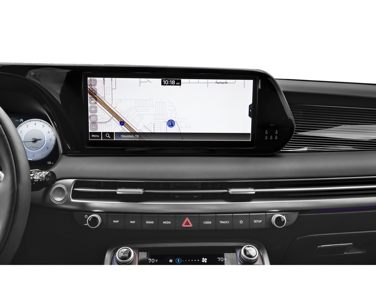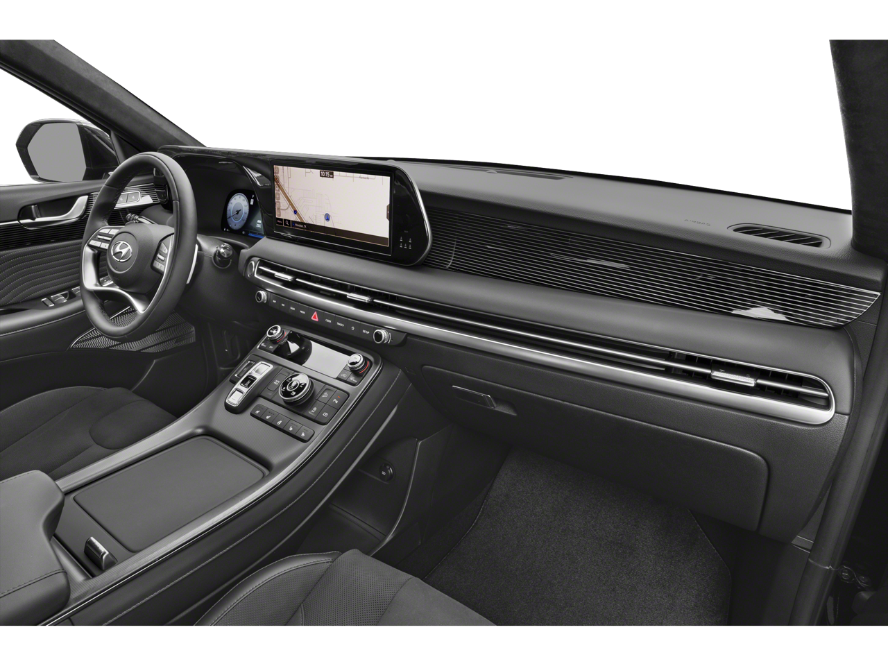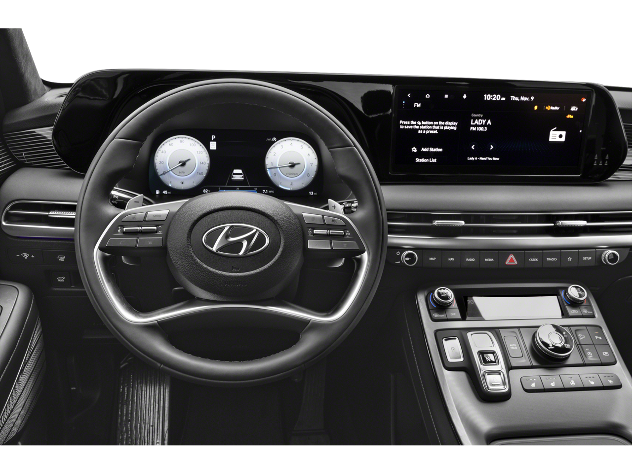 - Radio: AM/FM/MP3 Premium Audio System -inc: 630-Watts, Harman Kardon audio system w/12-speakers, Quantum Logic Surround, Clari-Fi, 12.3" color touchscreen display, onboard navigation w/traffic flow including incident data via HD Radio (HERE), Over-the-Air (OTA) map updates, SiriusXM, Android Auto and Apple CarPlay, USB, dynamic voice recognition, rear seat quiet mode, passenger talk (in-car intercom), Bluetooth hands-free connectivity w/multiple device connection and Bluelink Connected Car System