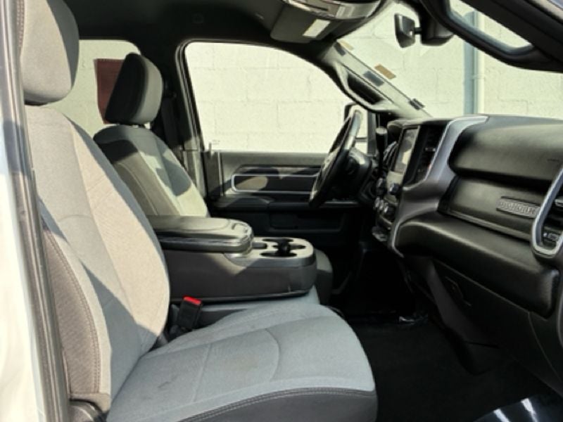 Quick Order Package 2HZ Big Horn. Level 1 Equipment Group: Google Android Auto; SiriusXM Radio Service; Bluetooth® Handsfree Phone and Audio; Integrated Center Stack Radio; For Details. Visit DriveUconnect.com; For More Info. Call 800-643-2112; Leather Wrapped Steering Wheel; Rear Dome with On/off Switch Lamp; Front Fog Lamps; Integrated Voice Command with Bluetooth®; Connectivity - US/Canada; Premium Cloth 40/20/40 Bench Seat; Glove Box Lamp; Auto Power-Folding Mirrors; Footwell Courtesy Lamp; 4G LTE Wi-Fi Hot Spot; GPS Antenna Input; Exterior Mirrors with Heating Element; Global Telematics Box Module; Mirror Running Lights; Uconnect 5 W Radio with 8.4" Display; 8.4" Touchscreen Display; Foam Bottle Insert (door Trim Panel); Black Exterior Mirrors; 18" X 8.0" Polished Aluminum Wheels; Apple CarPlay; Big Horn Instrument Panel Badge; Power Adjustable Convex Aux Mirrors; Forward and Reverse Utility Lights; Locking Lower Glove Box; Selectable Tire Fill Alert; SiriusXM Satellite Radio; Power Heated Fold Telescope Mirrors; Exterior Mirrors with Supplemental Signals; Steering Wheel Mounted Audio Controls; Exterior Mirrors Courtesy Lamps; Dual Glove Boxes; Center Hub; Power Adjust Mirrors; 2nd Row in Floor Storage Bins; Power Telescoping Mirrors. Quick Order Package 2GZ Big Horn. Premium Cloth 40/20/40 Bench Seat. Chrome Flat Cab-Length Side Steps. LT275/70R18E OWL On/off Road Tires. Front Fog Lamps. Tow Hooks. **Equipment listed is based on original vehicle build and subject to change. Please confirm the accuracy of the included equipment by calling the dealer prior to purchase.**